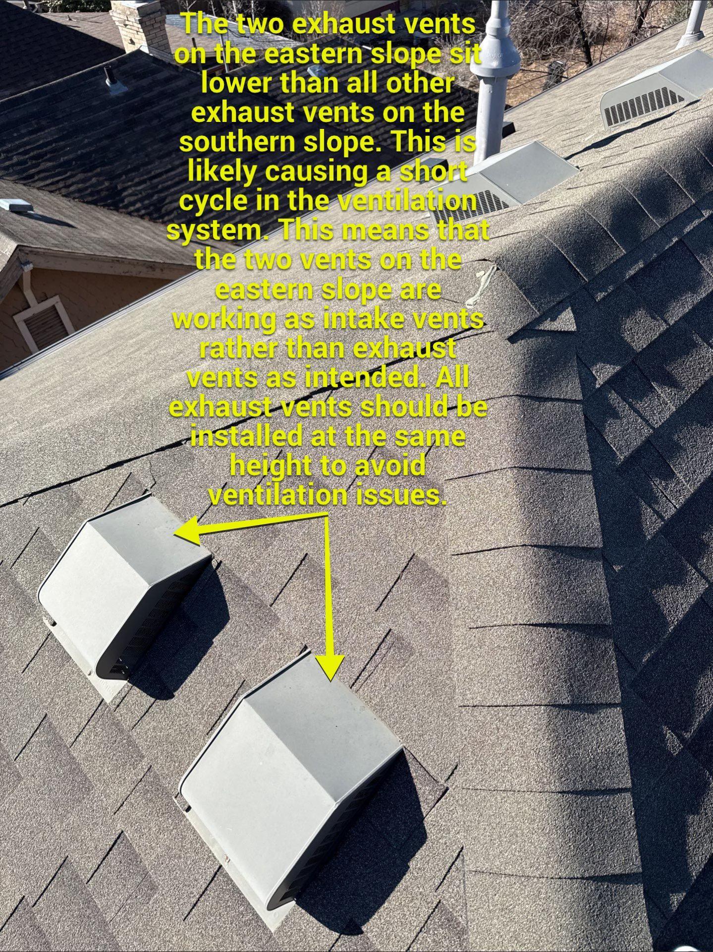 Ventilation scope: The existing attic ventilation was insufficient and contributed to widespread thermal cracking caused by a manufacturing defect. The intake and exhaust were fully redesigned to meet modern airflow requirements and support long-term shingle performance.