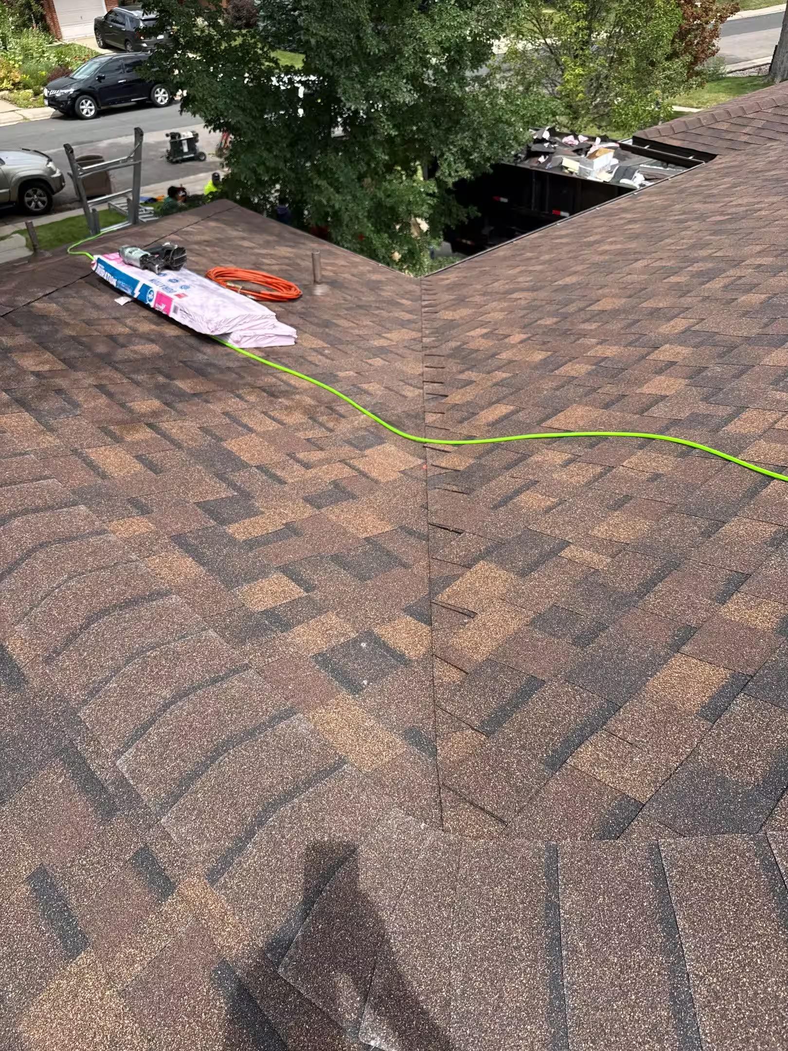 Material installed: Owens Corning Duration Storm asphalt shingles, Brownwood